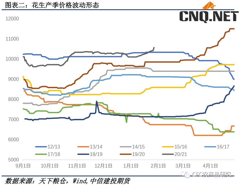 年后阶段:从3月到6月,花生价格在不同年份会出现明显的分化,库存偏弱则向上,反之则有望向下,这也将成为重要的交易机会。