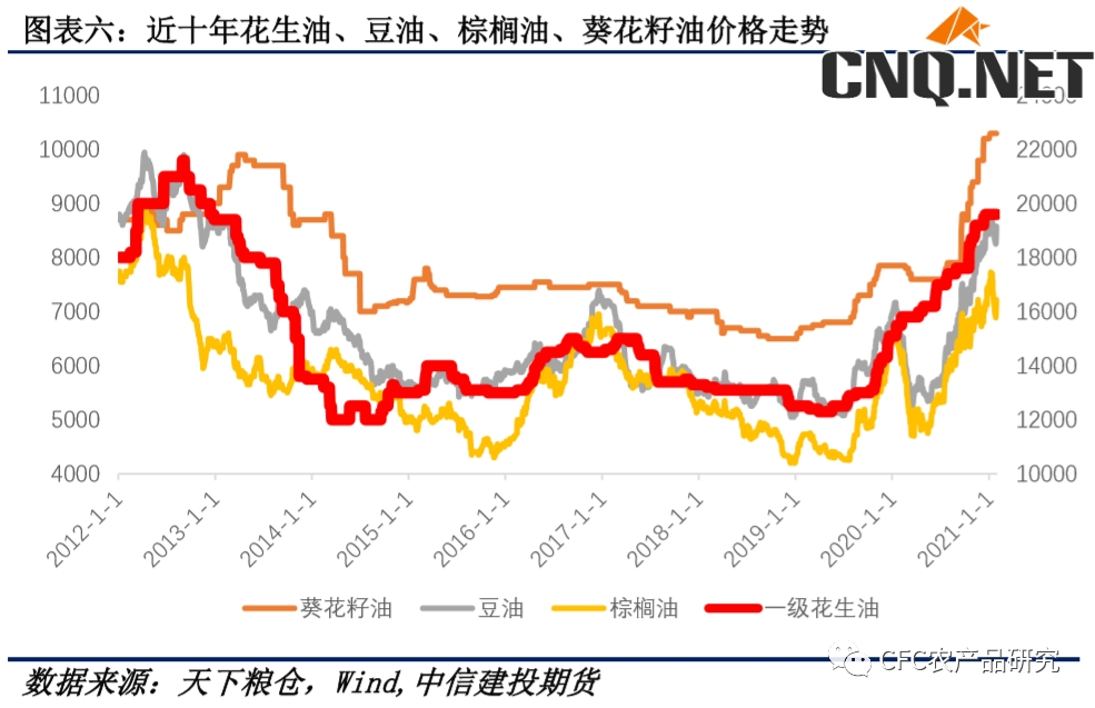 花生油作为食用油脂,与其他大宗油脂具有一定的相关性。