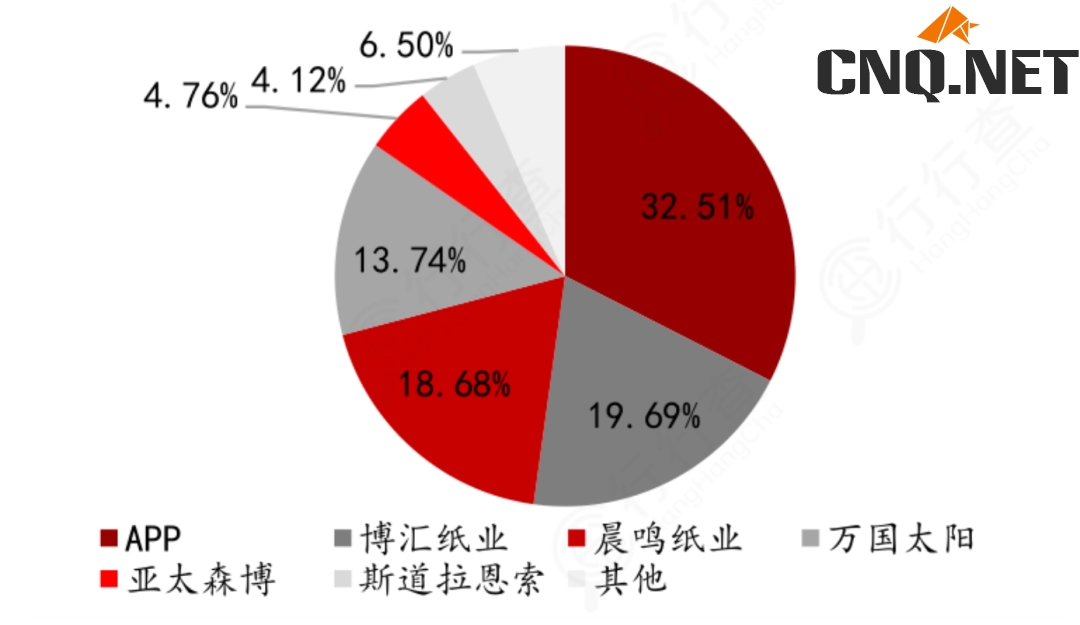 根据卓创的数据,2019年中国白卡纸产能位列前四的公司是APP、博汇纸业、晨鸣纸业、万国太阳,产能分别达到355、215、204、150万吨,行业CR4达到85%。