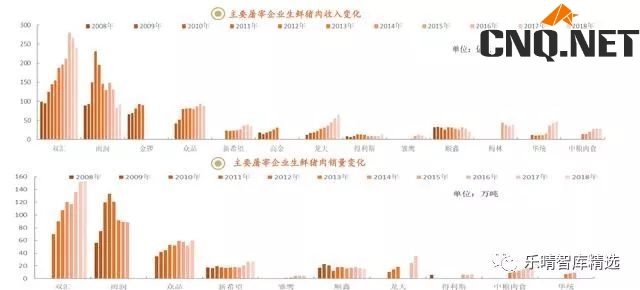 从过去10年看,主要屠宰企业生鲜肉收入均有所增长,但除双汇实现跨越式发展外,仅有龙大、中粮肉食等个别中小企业有所成长,雨润、众品、新希望、顺鑫等大型屠宰企业增长均不明显。