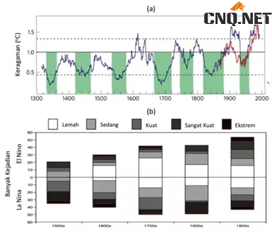 (a)温度图表 (b) 厄尔尼诺气候和拉尼娜气候次数图标